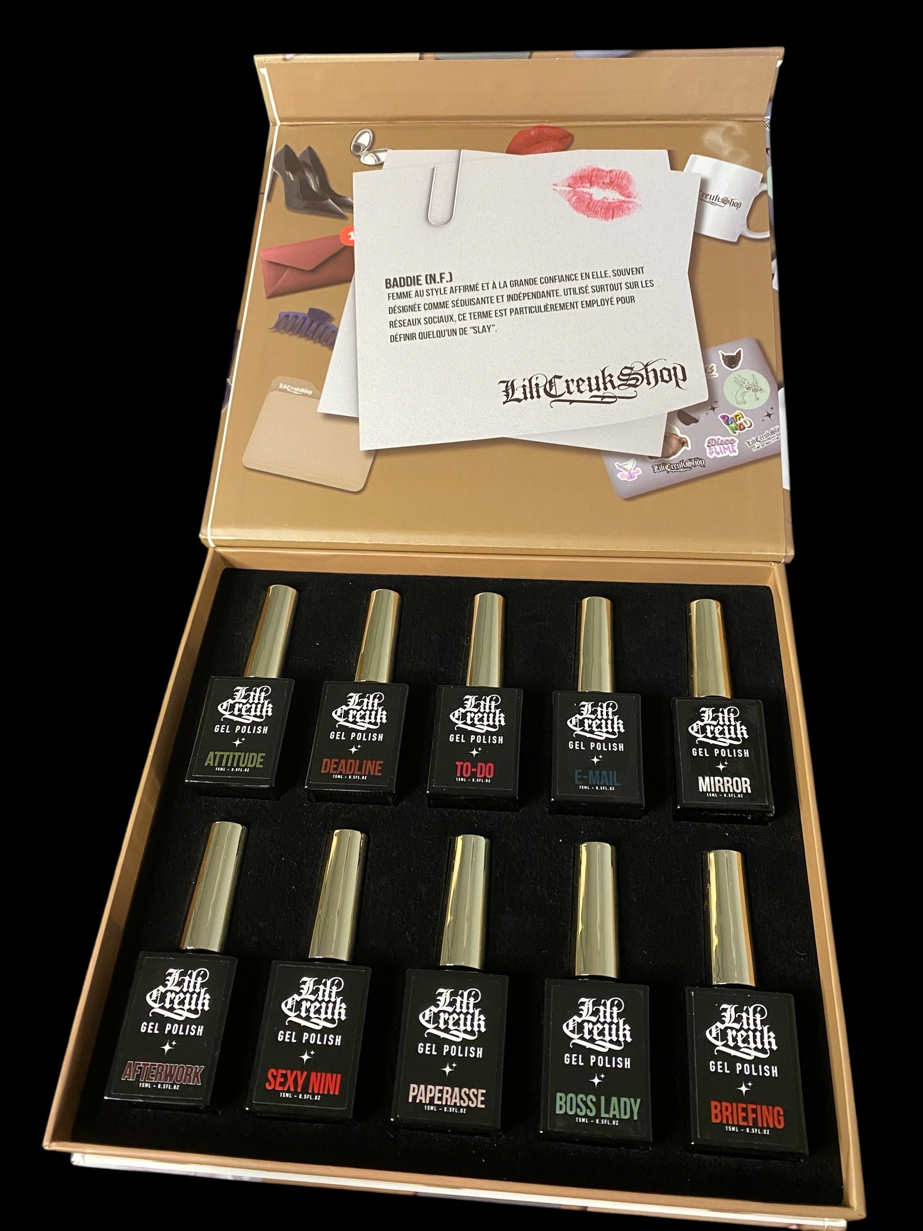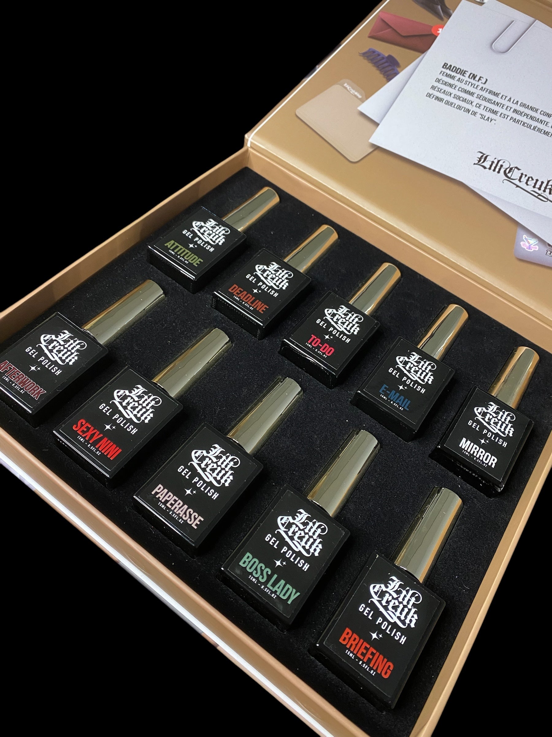 - 10 Vernis semi permanent : 9 vernis crème hyper couvrants + 1 vernis cat eye ✨.