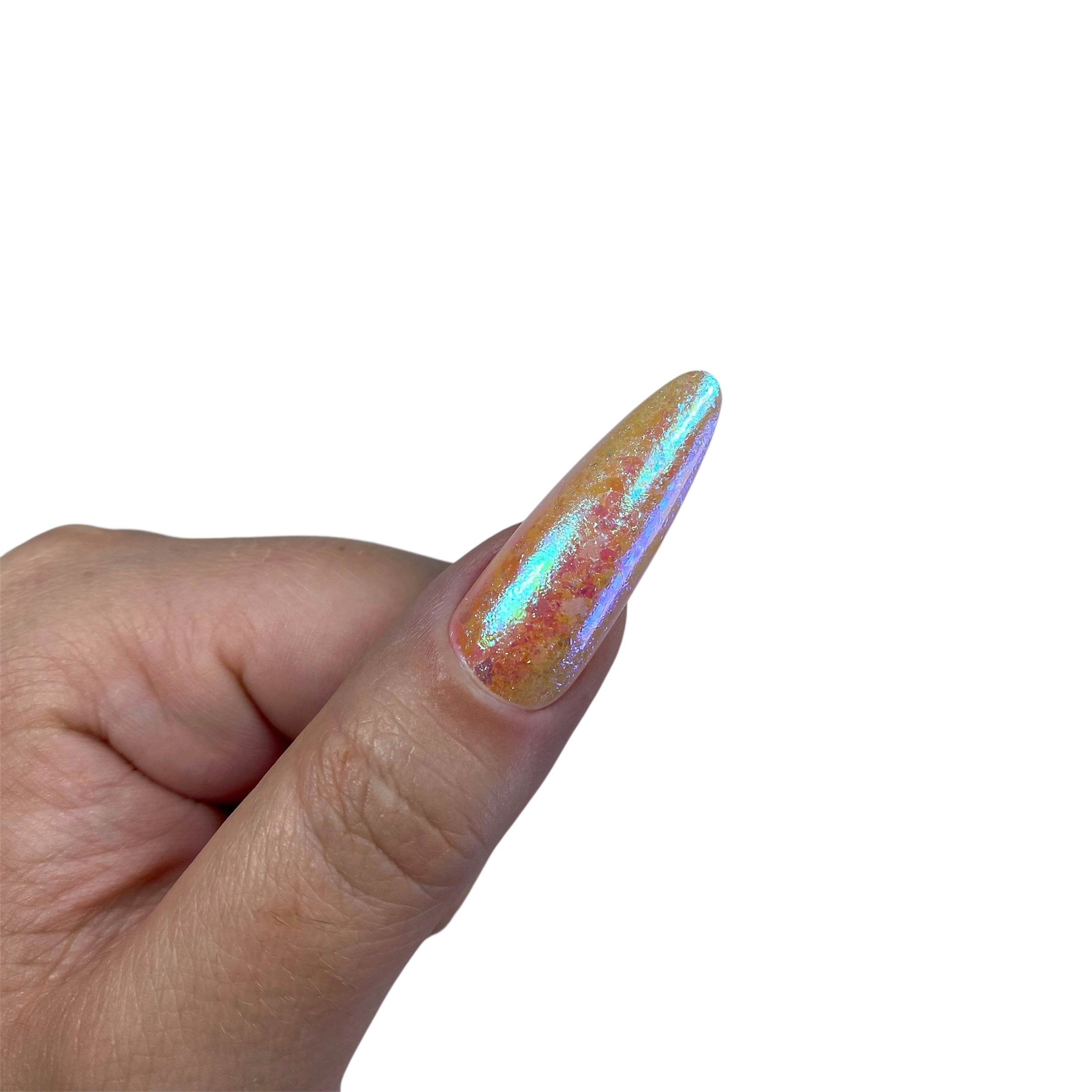 À appliquer sur top coat sans résidu pour un effet uniforme ou sur couche collante pour un effet plus pailleté et clairsemé.
