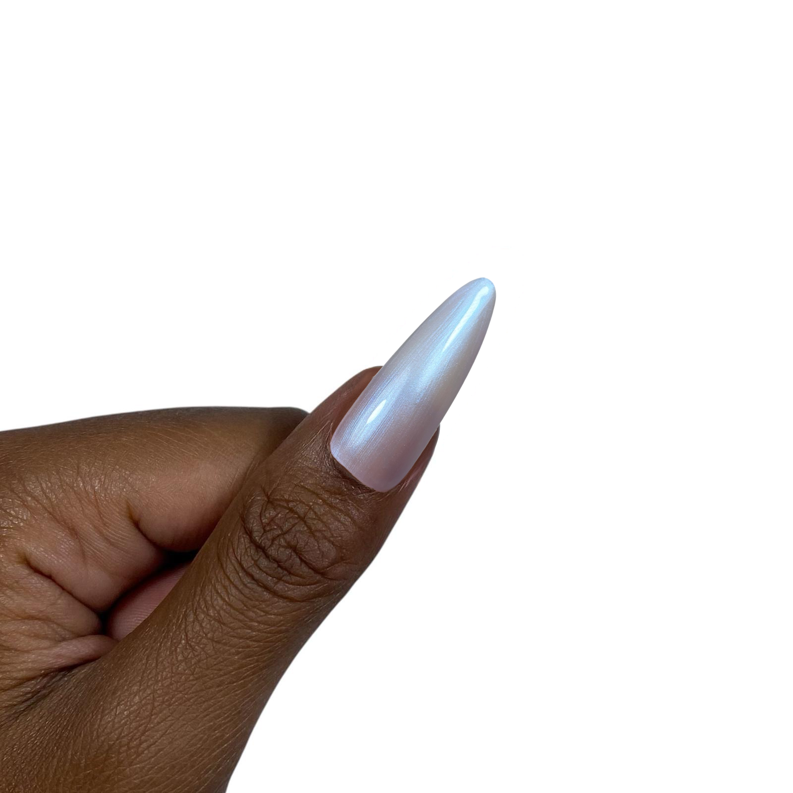 Vernis semi permanent perlé irisé blanc rosé à reflets bleutés