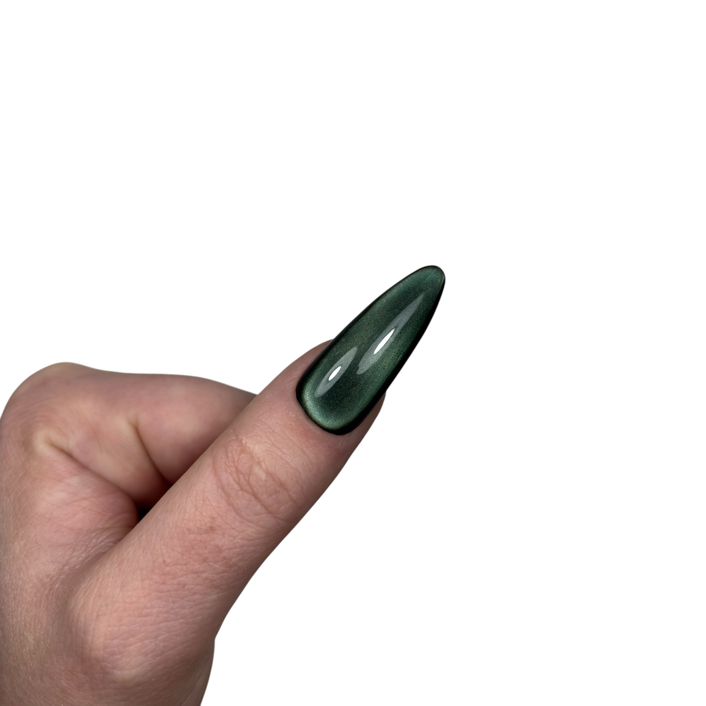 Vernis semi permanent vert foncé cat eye (à utiliser avec un aimant) .